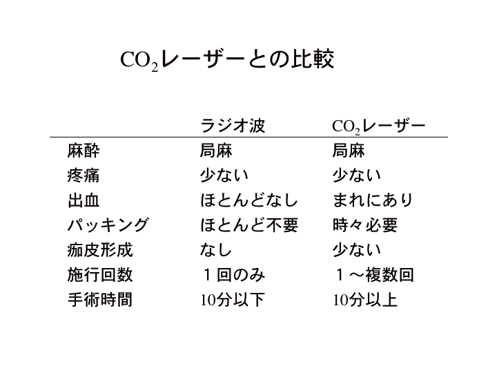 (最近広く行われている,CO2レーザーを用いた方法と比べて,以下の利点があります。)