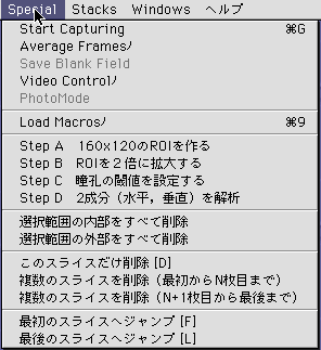 注意:Scion ImageはTIFF形式とBMP形式しか使えません.従ってAVI形式をTIFF形式に変換できる環境を御持ちの方のみ使用して下さい.
