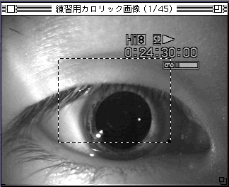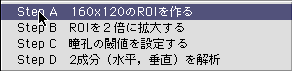まず「StepA 160x120のROIを作る」を選択すると,長方形の関心領域(ROI)ができます.このROIは,マウスかカーソルキーを使って移動することができます.移動は,正面視の時の瞳孔がROIの中央に来るようにして下さい.
