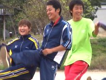 こけても、押されても、必死に陣地に棒を引っ張ります。