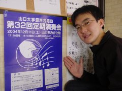 前回の弘中由香里さんからのご紹介、今回のインタビューは農学部3年の岩崎君です。彼は現在、文化会混声合唱団においてチーフコンダクター(首席指揮者)として活躍しています。夏に行われた中国大会ではメンバーを全国大会へあと一歩のところまで導きました。