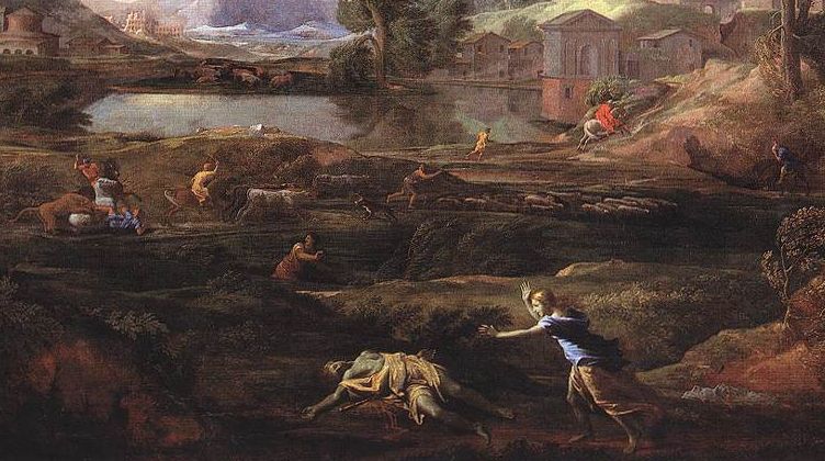 ニコラ・プッサン《ピュラムスとティスベのいる嵐の風景》、(部分) 1651年 油彩・カンヴァス 192.5×273.5 フランクフルト、シュテーデル研究所