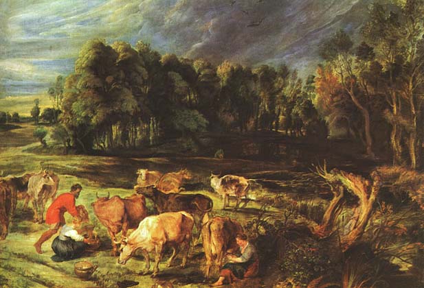 *《水車》 1663-68年 油彩・板 77.5×111 ブリュッセル王立美術館