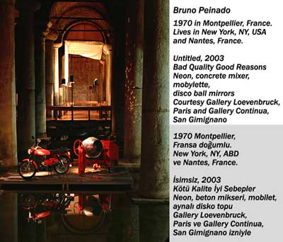 02 Bruno Peinado 《無題》、2003年、ネオン、コンクリート・ミキサー、ミニバイク、ミラー・ボール