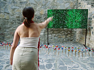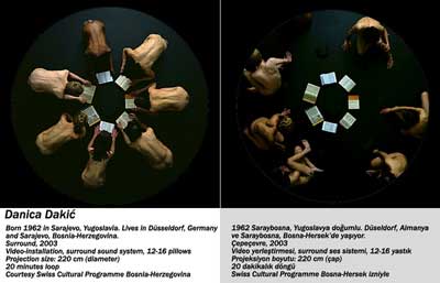 (部分1)、(2)、(3)(Source: Universes in Universe / Pascale Marthine Tayou)08 Danica Dakic 《囲む》、2003年、ヴィデオ・インスタレーション、サラウンド・サウンド・システム