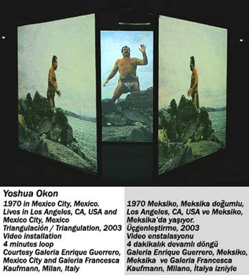 (部分)(Source: Universes in Universe / Jun Ngyyen-Hatsushiba)18 Yoshua Okon 《三角形組み》、2003年、ヴィデオ・インスタレーション