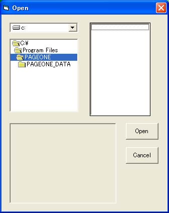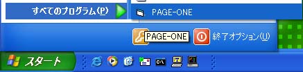 標準でインストールされた場合、”スタート”、”プログラム”項目内に”PAGEONE”がインストールされているので、これを選択するか、インストール先のフォルダ内にある”PAGEONE.exe”をダブルクリックして直接起動してください。