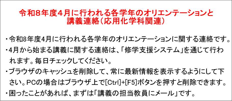 令和元年度応用化学科卒業証書・学位記授与式に関するアナウンスです。