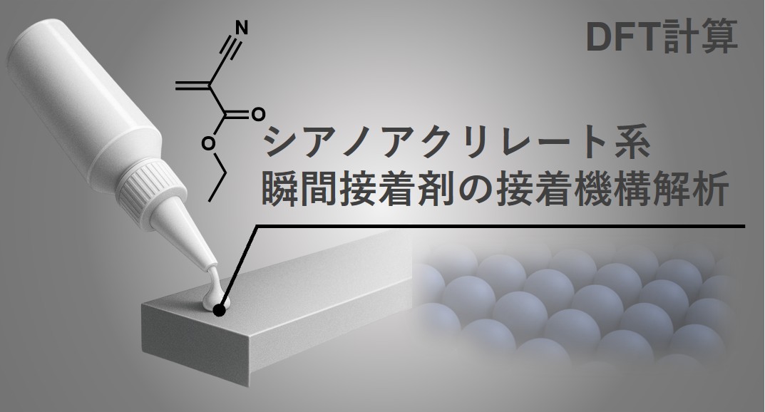 当学科修士課程の久保皓暉さんと住谷陽輔助教らの研究グループは、シアノアクリレート系接着剤が、金、銅、アルミニウム、シリカといった無機表面と形成する接着相互作用を分子レベルで解明するため、コンピュータを用いた密度汎関数理論(DFT)計算で系統的な解析を行いました。その結果、シアノ基やエステル基が表面と電荷移動相互作用を形成していることが明らかになりました。さらに、エステル基がプロトンや空気中の水分子によって加水分解すると、表面との相互作用はさらに強くなることがわかりました。