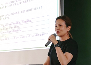 講演冒頭は、「国際的に活動や、グローバルに活躍、とはどういう人を指すか」から始まりました。学生から、英語でコミュニケーションしている人という意見がありましたが、講師からは、語学力もあるが、むしろ心身ともに健康、努力、謙虚である人、ということを指摘されました。講演を通して、海外で働くうえでも、コミュニケーションとこの3要素が大事であったというご自身の経験を述べられていました。