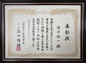 清水則一名誉教授が土木学会功績賞を受賞