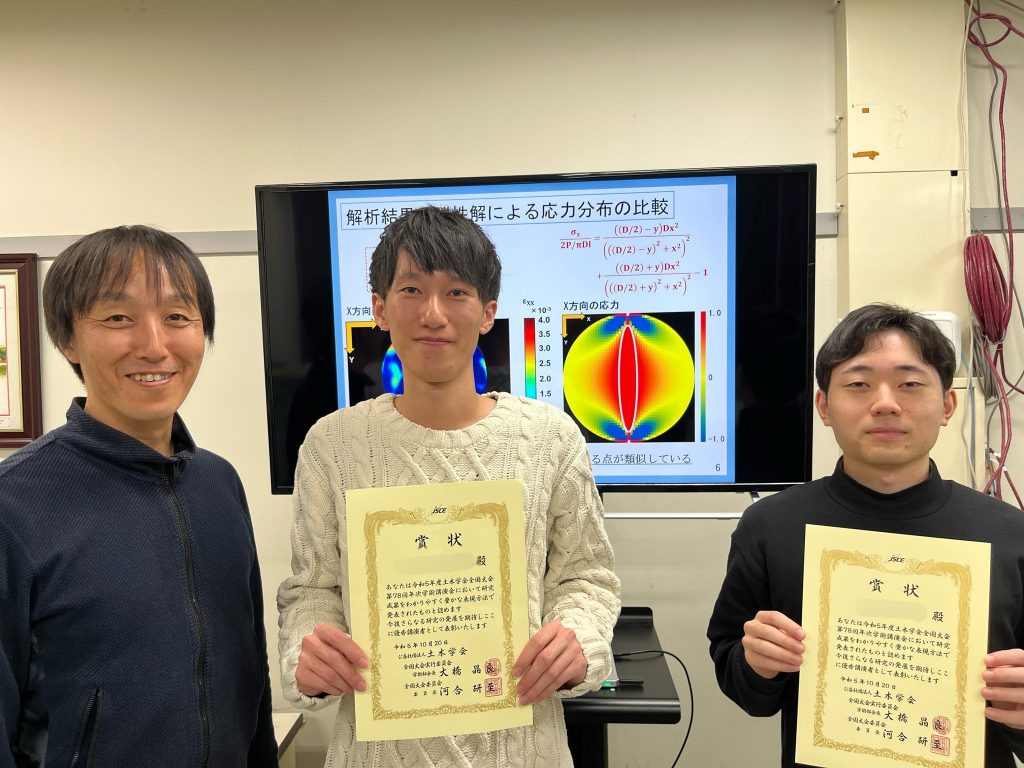 2023年9月に広島で開催された土木学会第78回年次学術講演会で,以下の4名が優秀講演者を受賞しました.おめでとうございます.