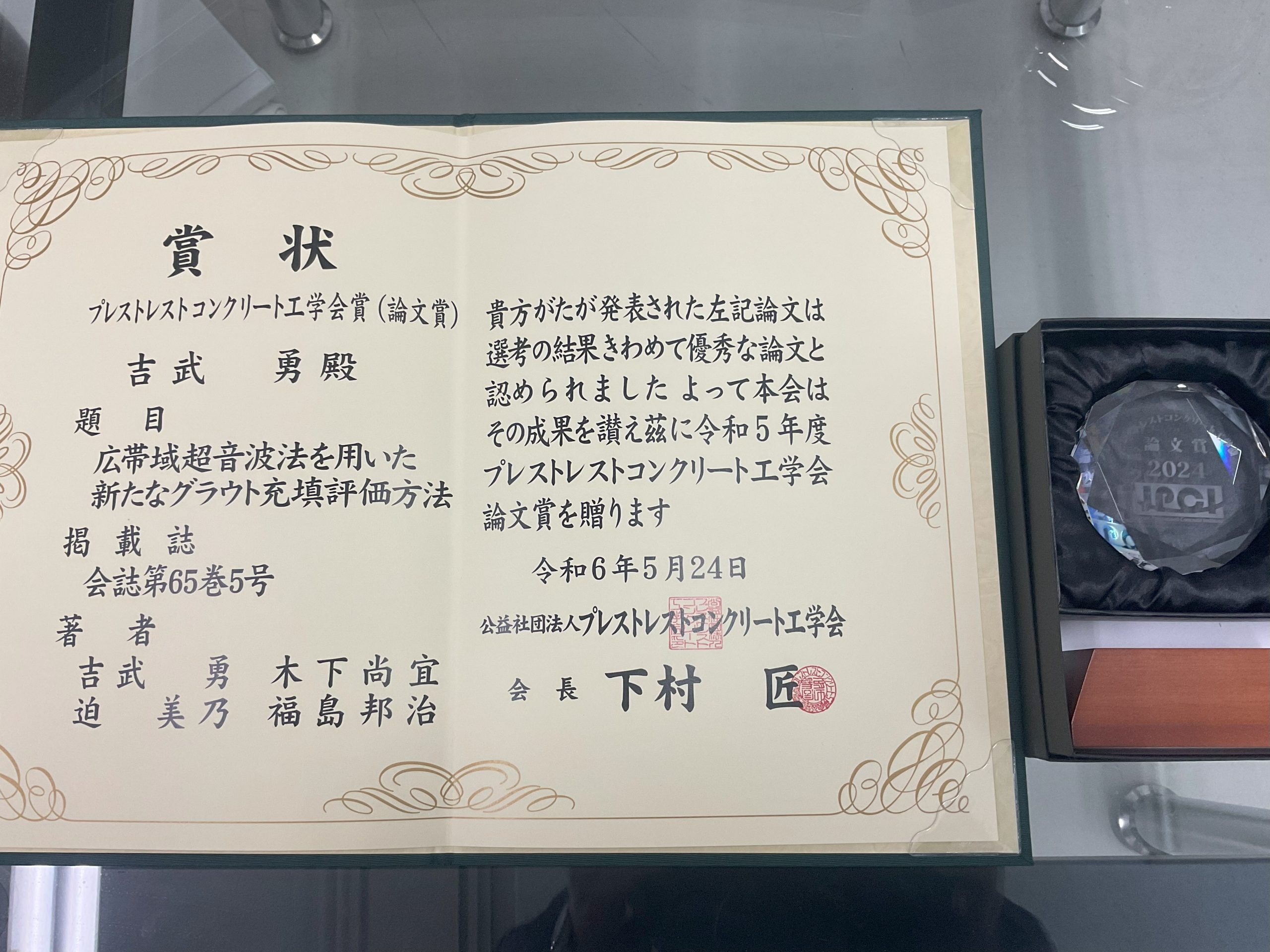 吉武勇教授が令和5年度プレストレストコンクリート工学会<論文賞>を受賞