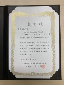 Azizul Moqsud准教授が中国電力技術研究財団優秀研究賞を受賞
