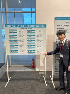 大学院博士前期課程2年松本陸さんが第33回プレストレストコンクリートの発展に関するシンポジウム(新潟)において「炭素繊維複合材(CFRP)ケーブルの機械式定着の解析的検討」という題目の研究発表を行い,優秀講演賞を受賞しました.