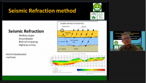 セミナーではインドネシア国リアウ大学のNur Islami教授から、統合された地球物理学的手法を使用したケーススタディとして、帯水層における重金属帯のマッピング、再生可能エネルギー資源としての熱水調査、浅い土壌での硝酸塩の消長の調査などが紹介されました。一つの手法が様々な分野で応用可能であることが示された興味深いセミナーとなりました。
