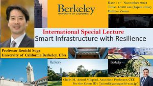 アメリカ・カリフォルニア大学バークレー校の曽我健一教授をお招きし、「Smart infrastructure with resilience」と題して特別講演を2021年11月1日午前10時(日本時間)に開催します。