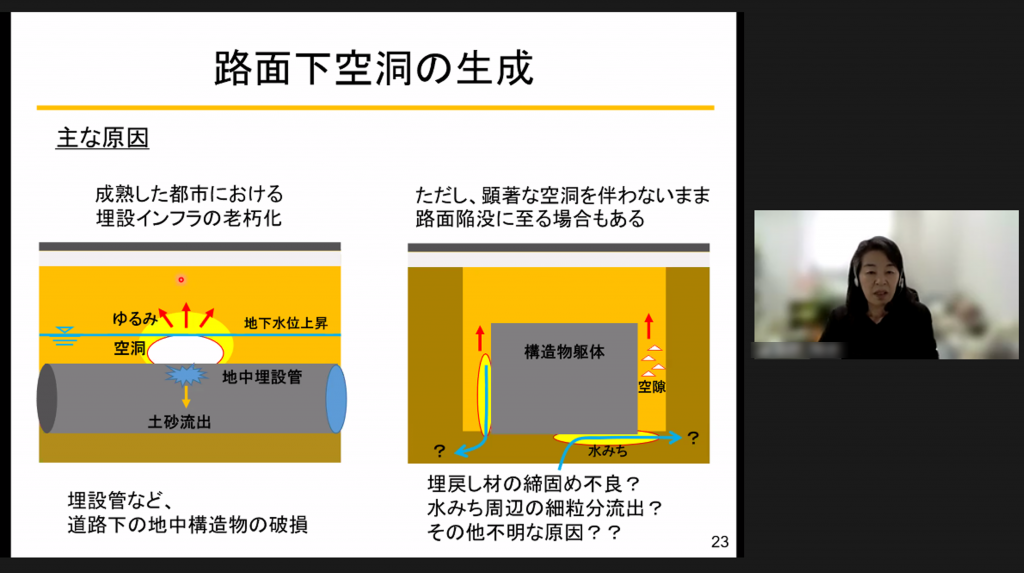 【講演内容】 講師:東京大学生産技術研究所 桑野玲子教授 講演題目:「成熟都市で頻発する道路陥没の現況と対策」