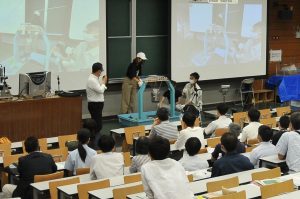 8月6日に山口大学常盤キャンパスにおいて実施されましたオープンキャンパスの社会建設工学科のイベントには80名強の参加者の皆様をお迎えいたしました.ご来場いただき誠にありがとうございました.写真は学科紹介,ブリッジコンテスト,土粒子を観察するためのデジタル顕微鏡です.