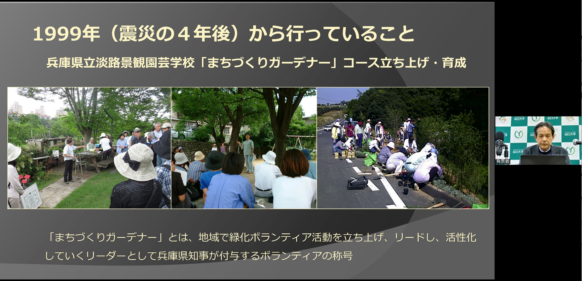 講師:平田 富士男 氏(兵庫県立大学大学院緑環境景観マネジメント研究科 教授、同 地域創造機構 地域連携教育研究センター長、兵庫県立淡路景観園芸学校 教員)