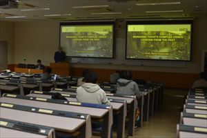 2023年3月2日(木)、「第4回国際防災・環境セミナー」(地域防災・減災センター主催、グローカル環境・防災学研究会共催)が山口大学工学部の対面会場とWEB配信を併用したハイブリッド形式で開催されました。対面会場では山口大学の教職員、学生が15名参加し、WEBでは大学、民間企業、その他一般から37名が参加しました。