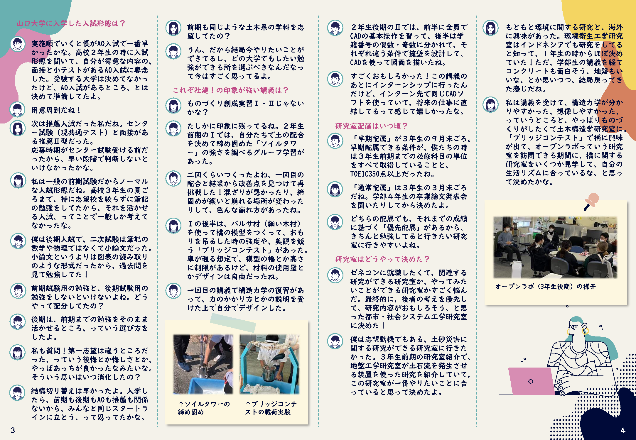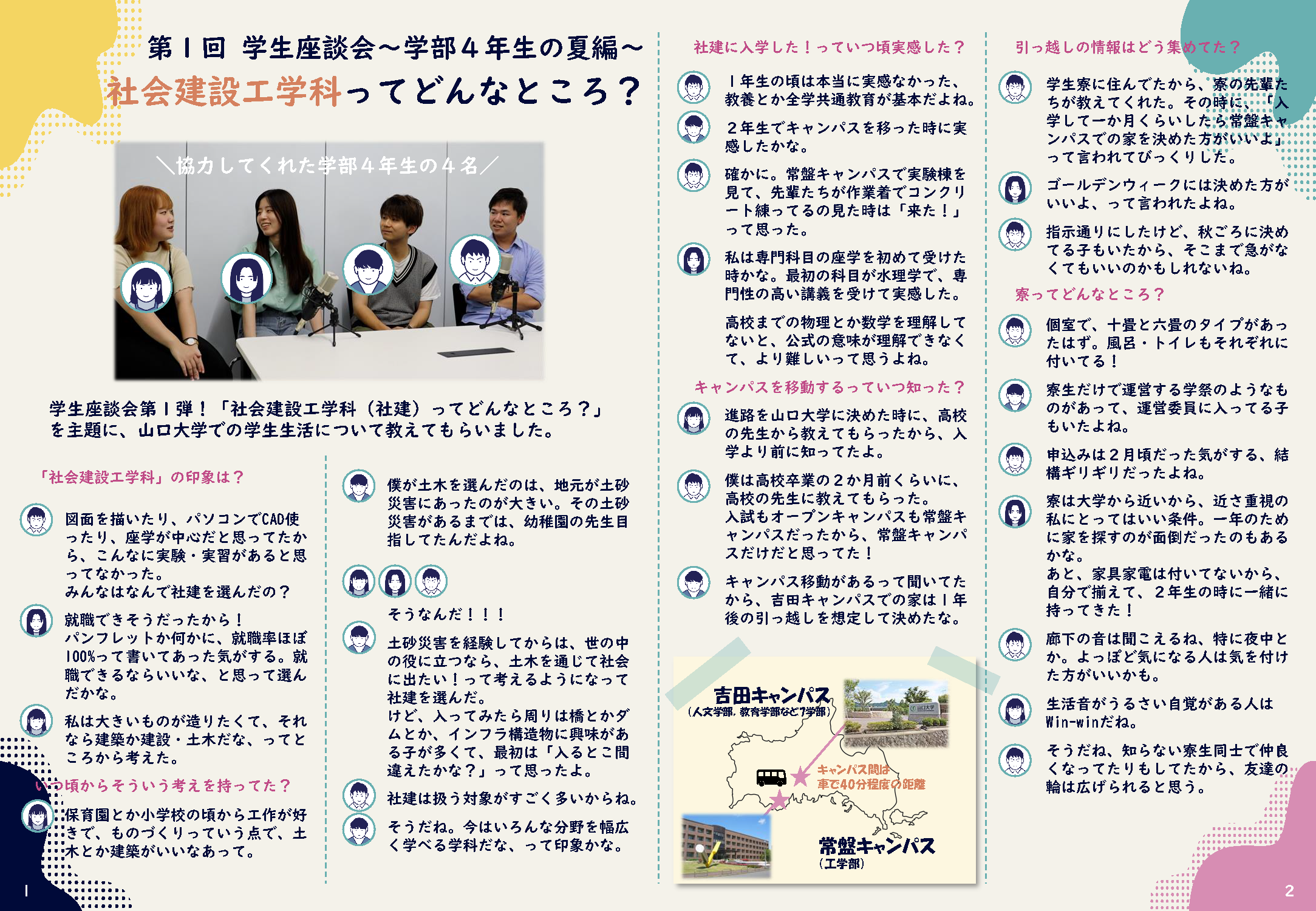 今回は「社会建設工学科ってどんなところ?」を主題に,山口大学社会建設工学科での学生生活について教えてもらいました。