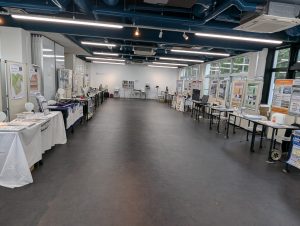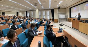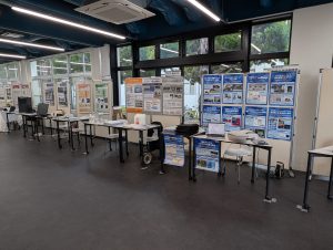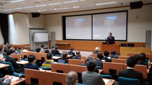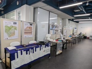工学部附属社会基盤マネジメント教育研究センターが中心となって産官学協働でインフラメンテナンス技術者を育成する実務者向け講座で,これまでに200名を超える「ME山口」資格者を輩出してきました.開講10周年を記念して2024年11月22日,工学部D11講義室・図書館・ラーニングラボにて,「インフラメンテナンス技術展示会」を開催しました.県内外から14社が新材料・新技術・新工法のブースを出展し,約100名の参加者が集まりました.