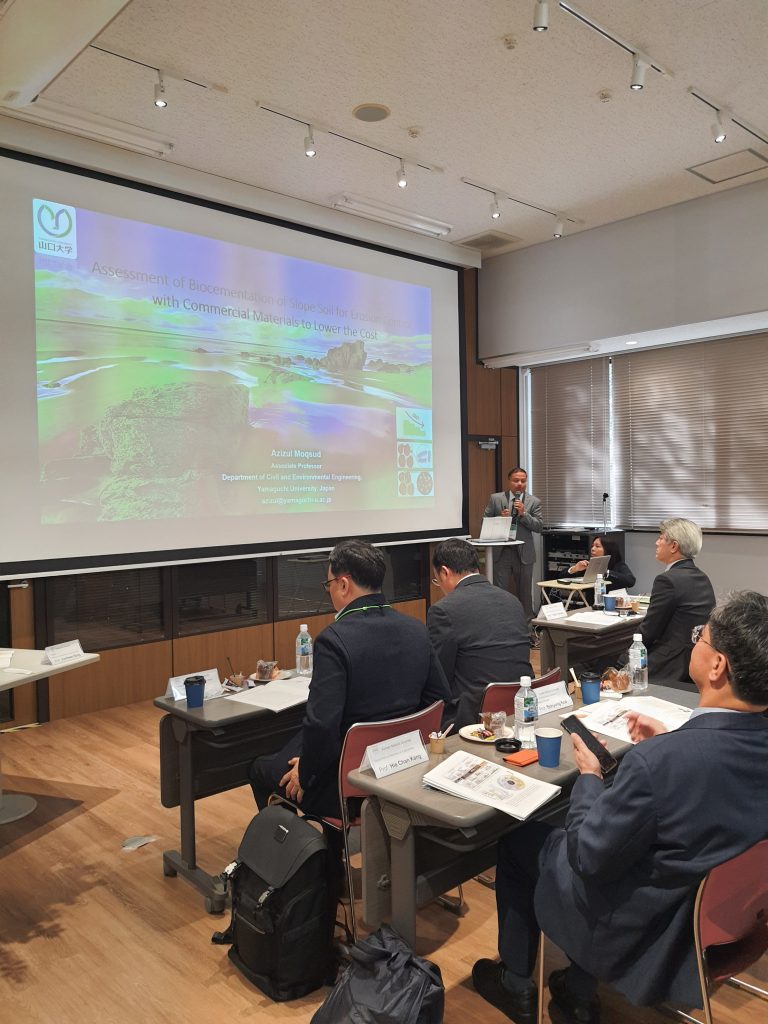 2024年10月30日,国立群山大学校と山口大学の国際ジョイントセミナーが,山口大学常盤キャンパスで行われました。社会建設工学科からは,原弘行 准教授とM. Azizul Moqsud 准教授が参加し講演を行いました。講演テーマは,地盤工学と地盤環境工学に基づくものでした。