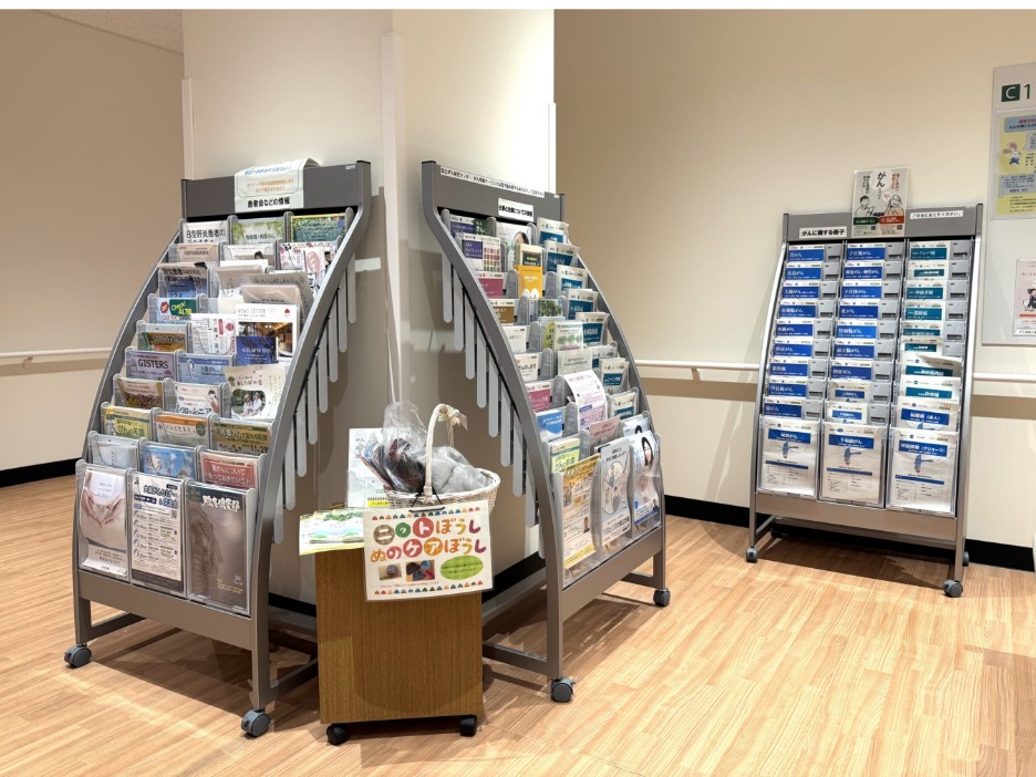 また、ボランティア団体の方が作成した、ケア帽子を無料で提供しています。必要な方はお気軽にがん相談支援センターにお越しください。