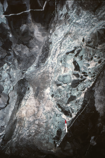 これは微細な銀鉱物の集合体であるが、自然金の微粒がこの部分に含まれることが多く、高品位の金銀鉱となる。