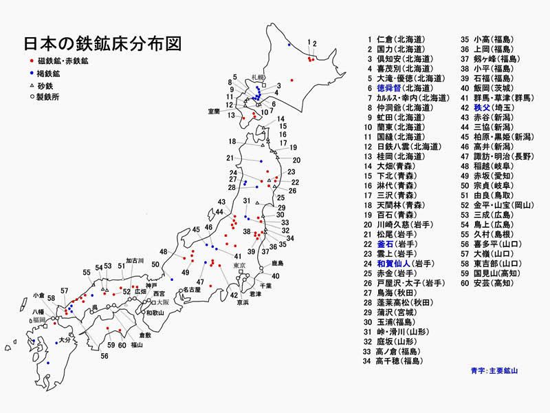日本には大小さまざまな鉄鉱を産出する鉱山があったが、今ではすべて廃山となった。