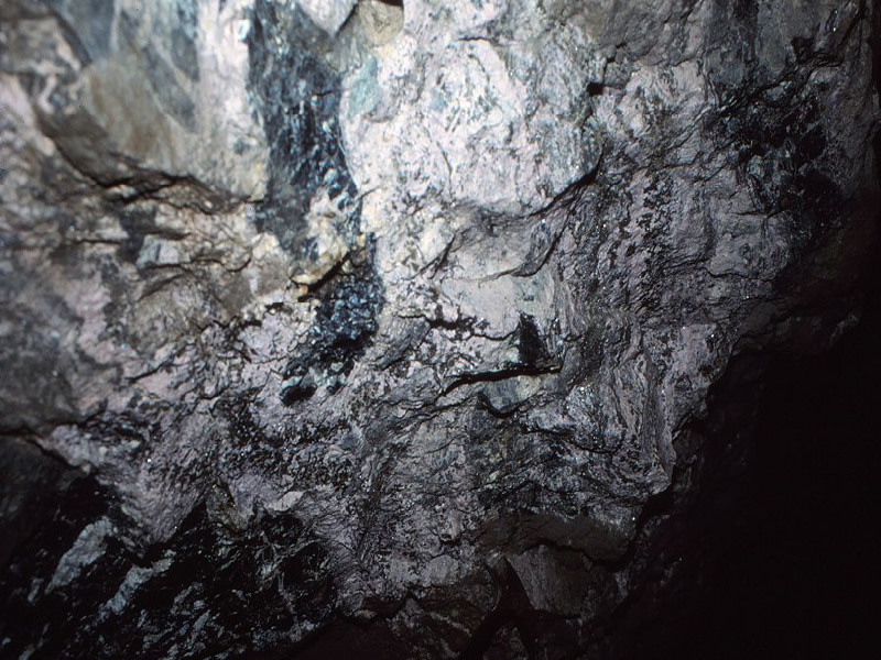 (4)変成マンガン鉱床は、(2)のタイプの層状マンガン鉱床が地下深部で広域変成作用(熱や圧力の影響)を受けたもので、マンガンの酸化鉱物が変成してバラ輝石、テフロ石、ハウスマン鉱(Mn3O4)、緑マンガン(MnO)などとして産する。