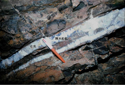 鉱脈鉱床からは多種多様な鉱物が産出している。いま,主な鉱物を示すと下表の様である。