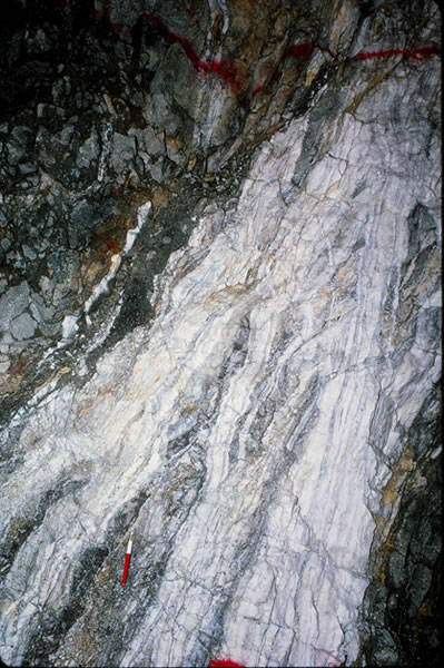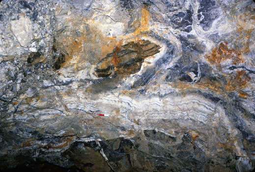 このような網状鉱染鉱床は金鉱床の多くで採掘されている。チリ,エル・インディオ鉱山はこのような鉱床で高品位の鉱石を盛んに採掘している。