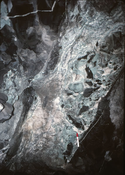 割れ目はいわゆる断層(せん断裂罅)や張力裂罅のような規模の大きいものばかりでなく,微細で不規則な網状のものがある。一概にはいえないが,どちらかといえば浅い所にできやすい。また断層や張力裂罅の末端部が細脈化し,網状体になる場合がある。とくに割れ目の上部で,地表に近い所が網状に細脈化し,上拡がりの漏斗状を呈することがよくある。