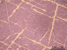 山形県朝日村の大張鉱山の鉱床や鉱石鉱物については渡邊(1937,1938)により詳しく研究されているが,まだEPMAの無い時代で,反射顕微鏡での観察であったが,数種のBi鉱物を見出し記載している。その中で下図のような世界的に珍しい斑銅鉱中に黄銅鉱とCu-Bi硫塩鉱物の二重格子組織を発見している。このCu-Bi硫塩鉱物はその光学的性質からクラプロート鉱と推定した。この組織は初生的には斑銅鉱固溶体と生成し,その後の冷却過程で黄銅鉱とクラプロート鉱が離溶したものと推定している。
