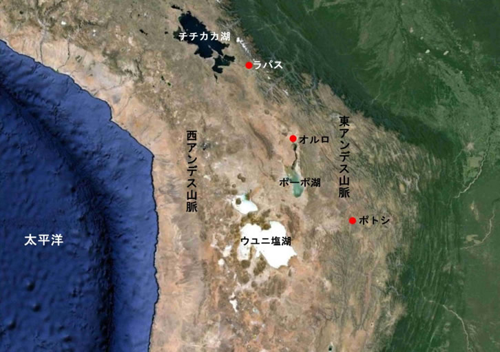 ここではチチカカ湖周辺,ラパス周辺,オルロ周辺,ポーポ湖周辺およびウユニ塩湖などを紹介します。