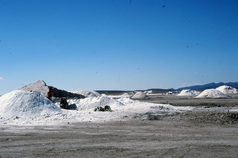 塩湖での岩塩の採掘現場