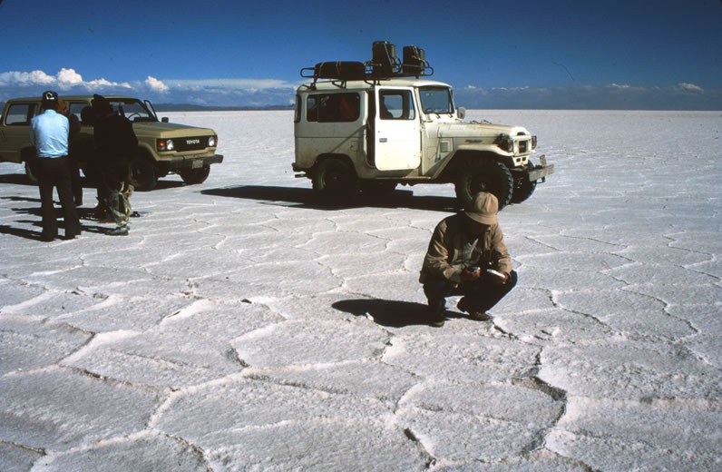現在はボリビアの観光地としてかなり有名になっていますが,我々の調査した時期(1975~1985年)には日本では殆ど知られていませんでした。また,現在はリチュウム資源として世界中から注目されている塩湖です。