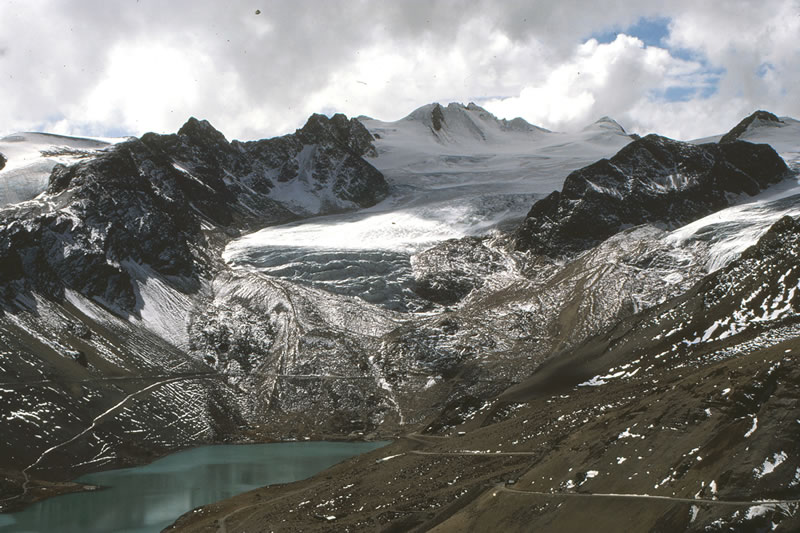 ビロコ鉱山近くの氷河と氷河湖