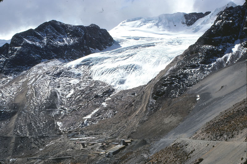ビロコ鉱山全景と背後に見える氷河