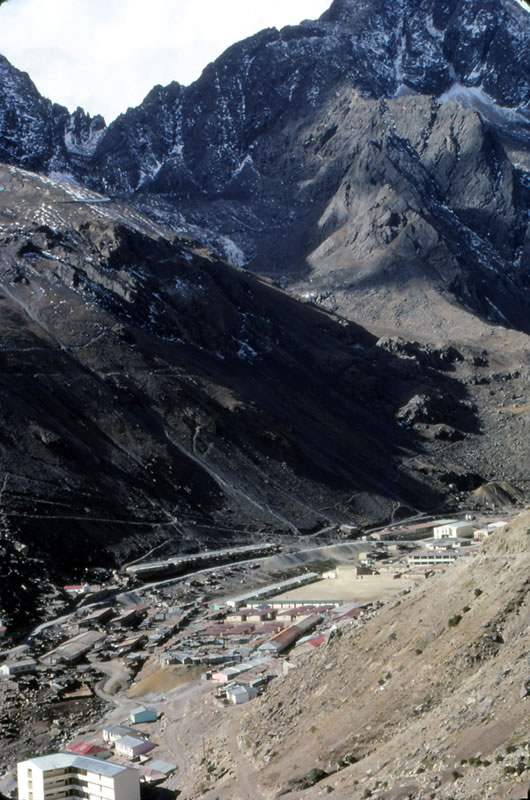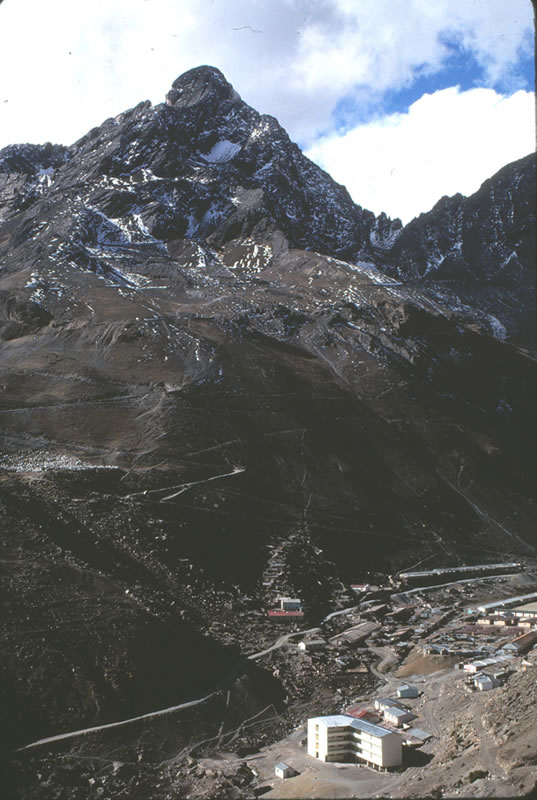 立抗(標高 4,422m)と鉱山施設
