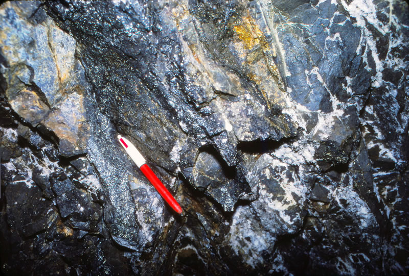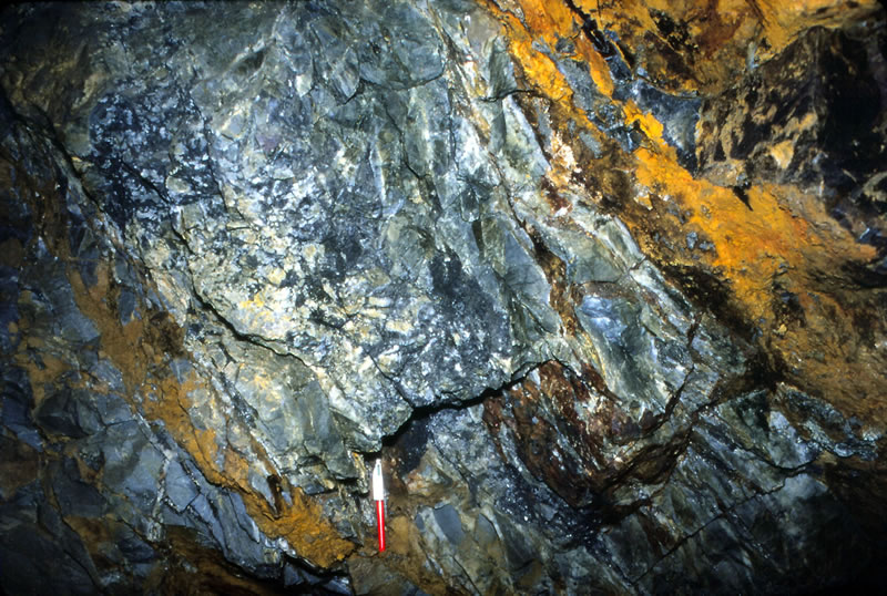 カタビ鉱山の黄鉄鉱・錫石鉱脈