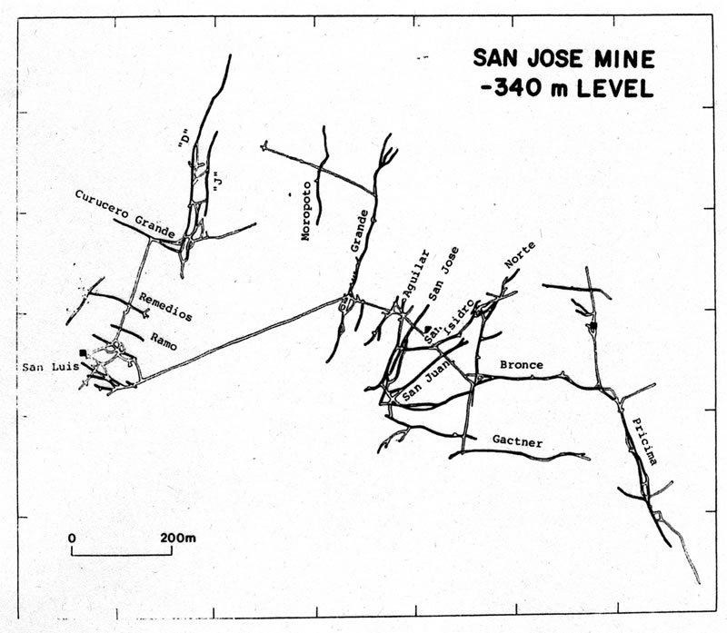 サン ホセ鉱山の鉱脈分布図