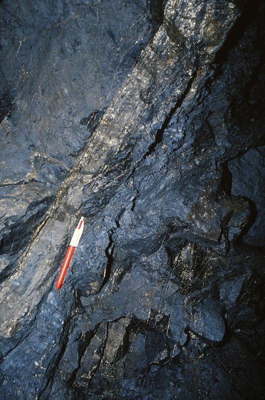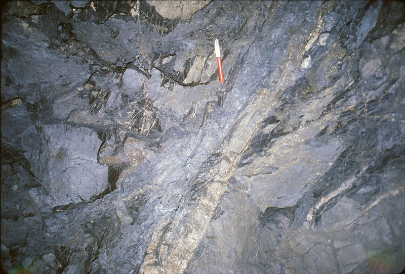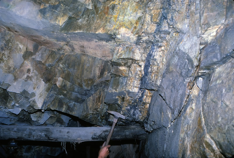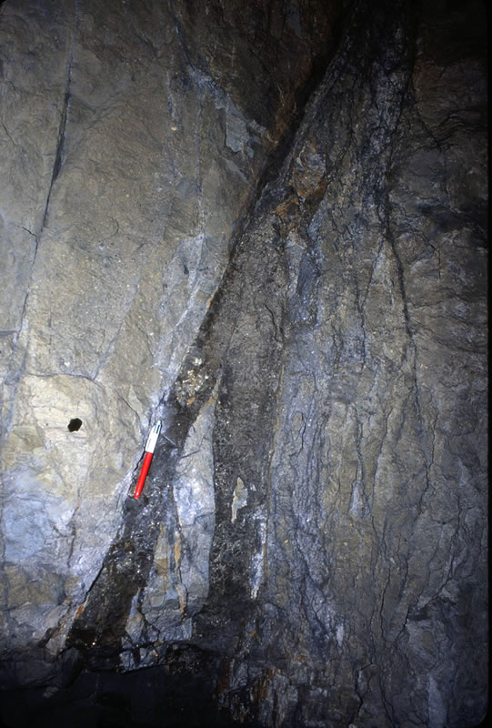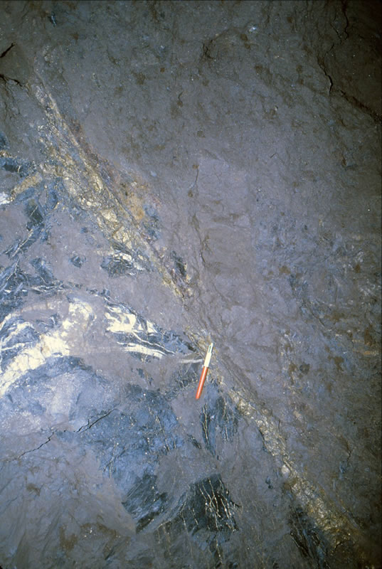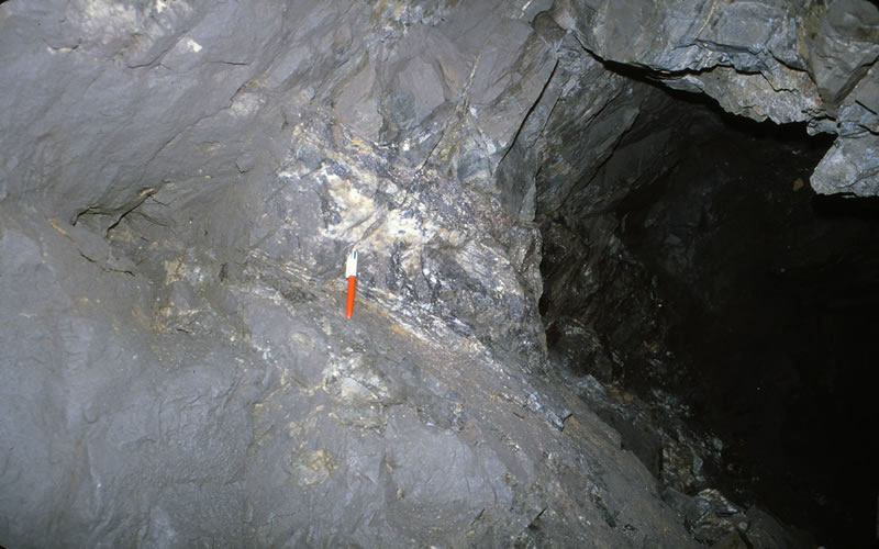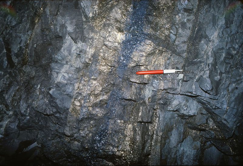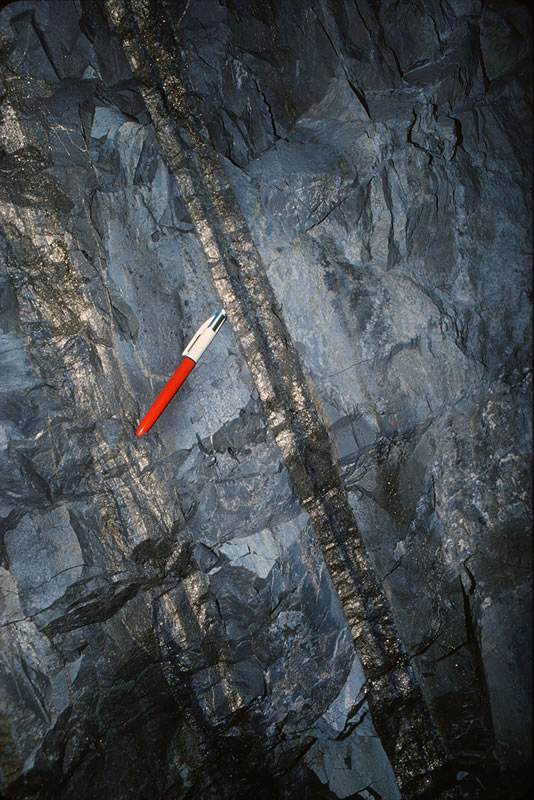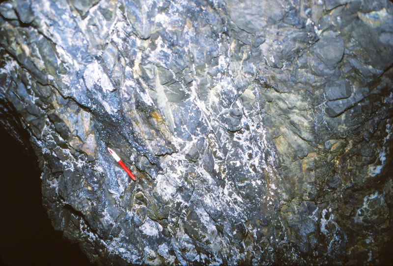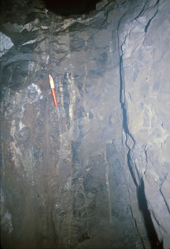 縞状に発達する鉱脈(D脈)