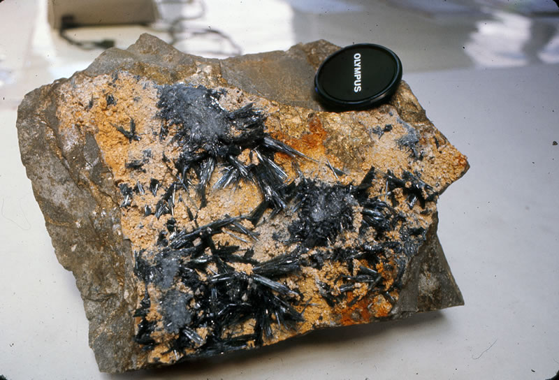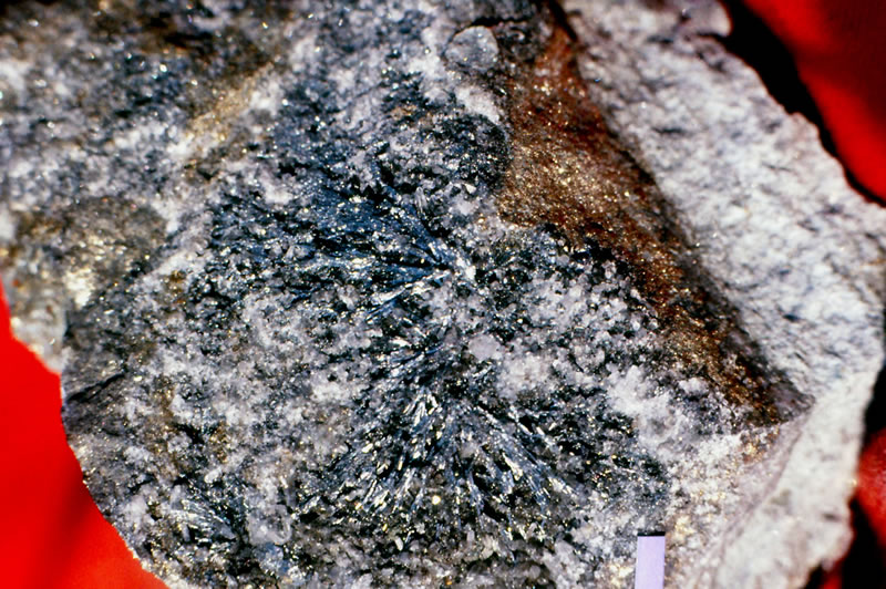 呈する毛鉱と黄鉄鉱鉱石