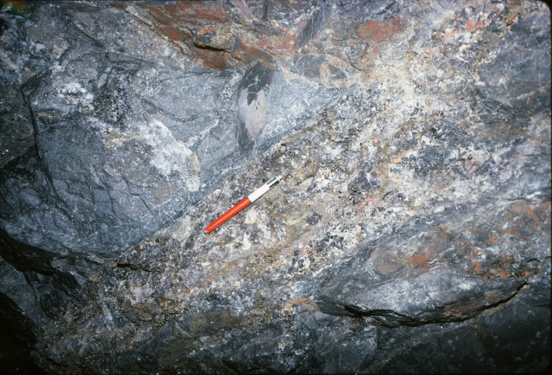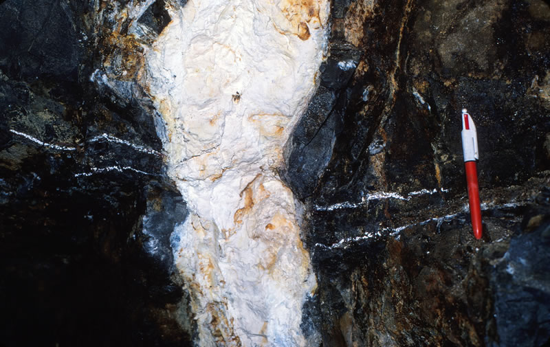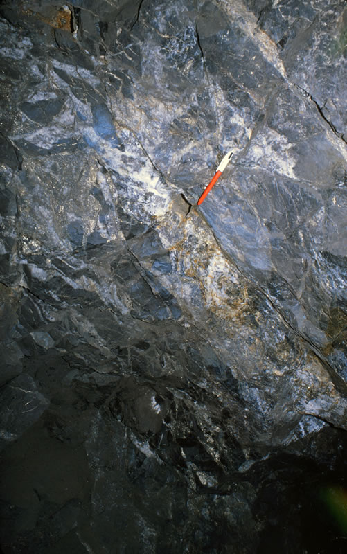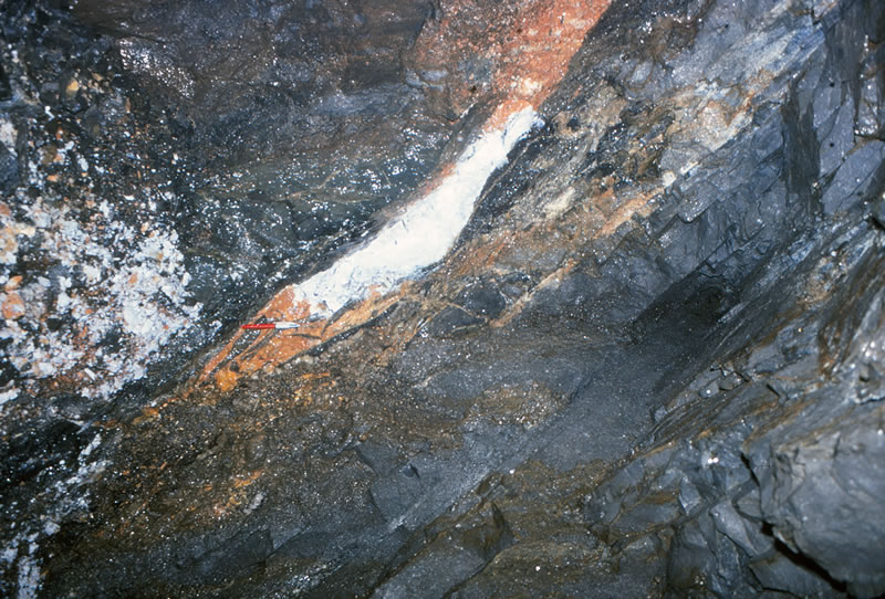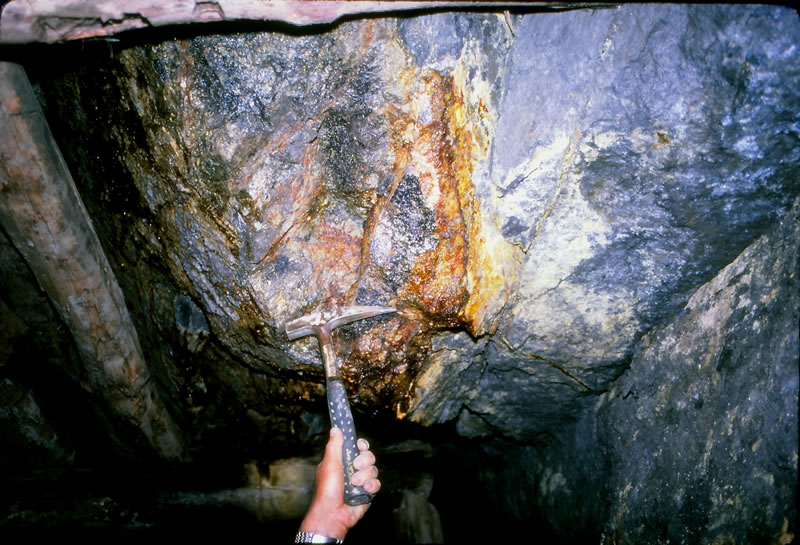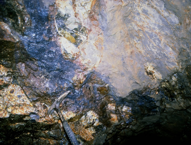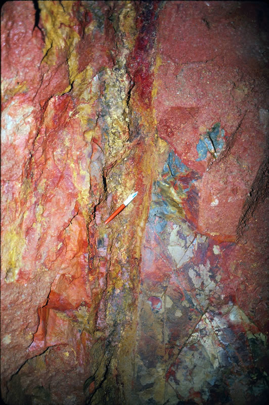 鉱脈の露頭(母岩:アダメライト斑岩)