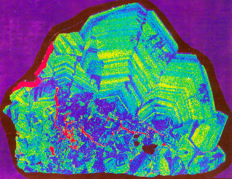 (鉄の累帯組織が明瞭に認められる)