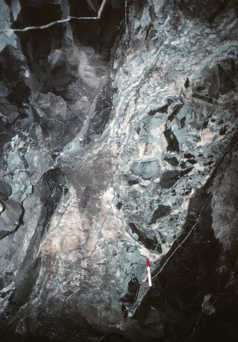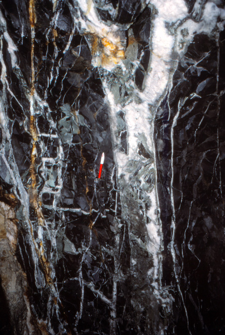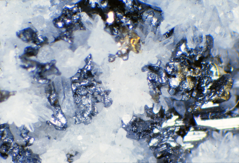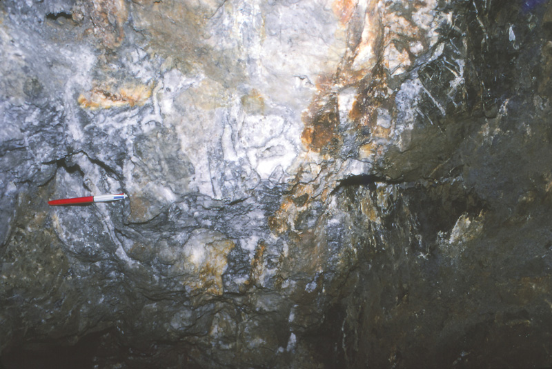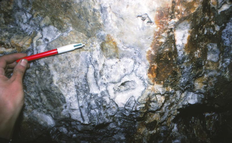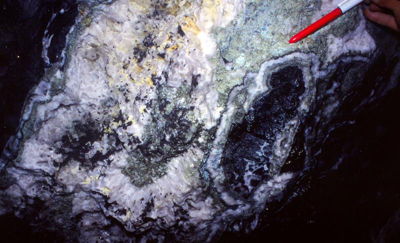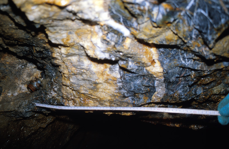 光竜鉱山から産出する金・銀鉱物としてエレクトラム、アグイラ鉱、濃紅銀鉱、ポリバス鉱-ピアス鉱系鉱物、ミアジル鉱などが知られていたが(苣木他、1983)、最近日本新産鉱物としてバウムスターク鉱の産出が報告されている(Kitakaze et al., 2012、本HP日本新産鉱物参照)。特に3号脈60mLの鉱脈は高品位鉱石がみられ、しばしば晶洞中には上記銀鉱物の自形結晶が産出した。