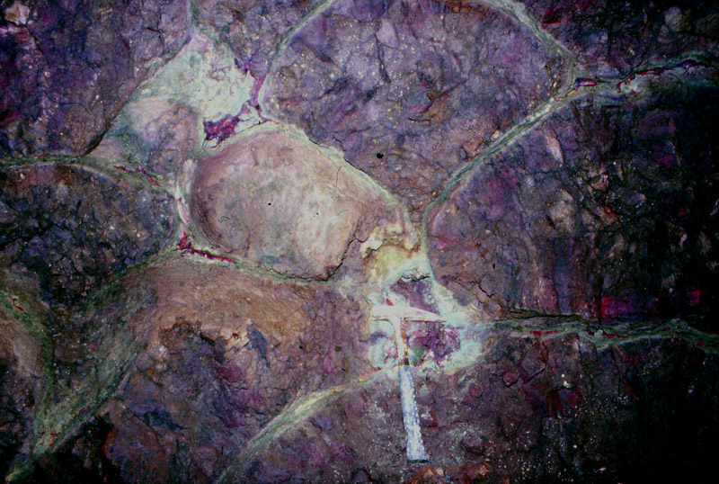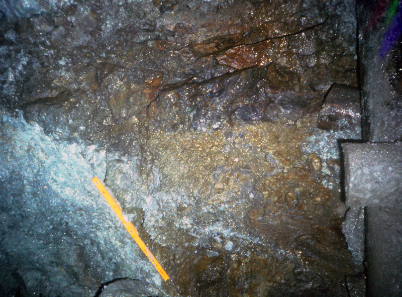 古遠部鉱山は秋田県鹿角郡小坂町字古遠部に位置した黒鉱鉱床で、湯ノ沢・大黒沢東・大黒沢西・曲屋沢・東又沢・衛星鉱体などの6鉱体が知られていた。 鉱体は主として下部から珪鉱、黄鉱、黒鉱、鉄石英帯の順序に連続して配列する鉱体であるが、珪鉱の上部に分布する緑色凝灰岩中に硫化鉱物が濃集する鉱体や堆積性構造(級化層理)を有する鉱体(湯ノ沢西部鉱体)も認められた。 これらの全ての鉱体を玄武岩溶岩が覆っている。大黒沢東・西鉱体の黒鉱は特に金6-8g/t、銀200-300g/tと金銀品位が高く、銀価格高騰時には生産額の約半分を占めた時期もあった。大黒沢東鉱体の黒鉱最上部の斑銅鉱質鉱石から銀鉱物の一つである新鉱物“古遠部鉱”が発見されている(本HP【研究成果)【新鉱物】古遠部鉱を参照】。